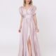 Magnifique robe de soirée en satin de style sirène. Une jupe à large ceinture agrémenté d’un bustier cache cœur croisé derrière le cou. Cette robe de cérémonie est proposé dans 6 coloris.