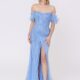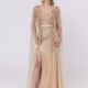 Une robe de soirée en mousseline entièrement pailletée en forme fourreau doté d’une fente devant très audacieuse. Un bustier à bretelle agrémente cette jolie tenue de cérémonie.Elle est proposée dans 2 coloris.